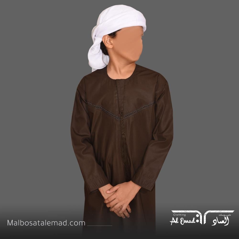 ثوب اماراتي ولادي بني غامق بتصميم عصري
